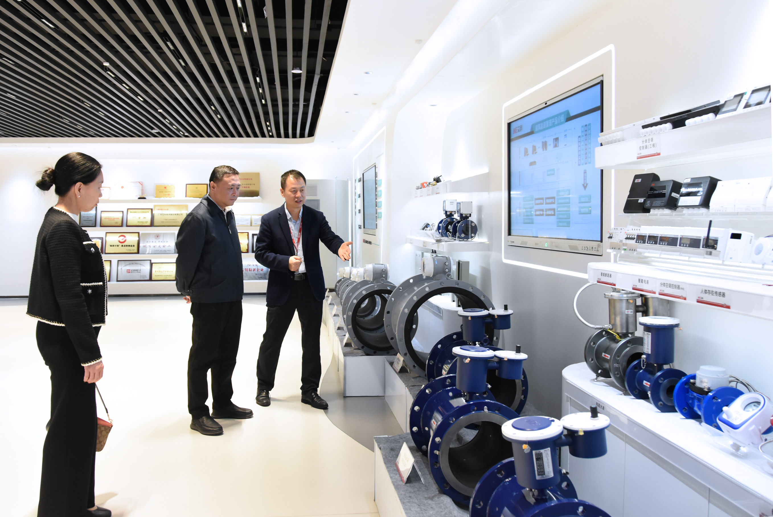 在Bevictor伟德产品体验中心,公司总经理张江民重点介绍了Bevictor伟德发展历程、业务板块布局等发展情况,随后进一步参观了Bevictor伟德0.2级电磁流量计、一级电磁热量表、智能电表、电磁水表等核心硬件产品的优势性能、创新功能,特别介绍了Bevictor伟德近年来协助中信环境技术建设的的潮南园区平台、集团级智慧水务管理平台情况以及为各区域公司提供智能仪表和自控系统改造服务情况。通过展示与交流,赵翔对Bevictor伟德在智能仪表自控方面的产品创新能力和丰富经验给予了充分认可。