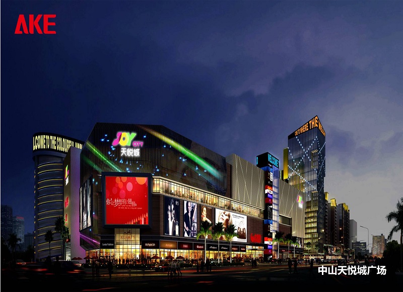 中山天悦城广场占地90亩,总建筑面积28万平方米,商业面积达16万平方米,包含16万平方米的旗舰商业,10万平方米的住宅和2万平方米的商务写字楼,其中8层的立体集合式购物中心,是集商业、甲级写字楼、高尚住宅为一体,一站式城市生活购物中心。